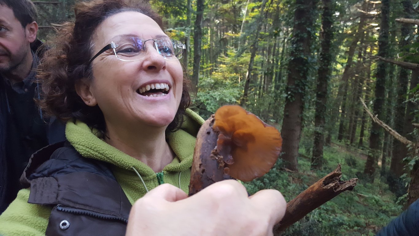 Abbiamo potuto apprezzare la bellezza di un Geastrum fimbriatum e del sistema di dispersione delle spore di questo gasteromicete. Abbiamo discorso della commestibilità di Auricularia aricula judae e su come distinguere l’Hydnum rufescens dal suo cugino H. repandum ( steccherino dorato).