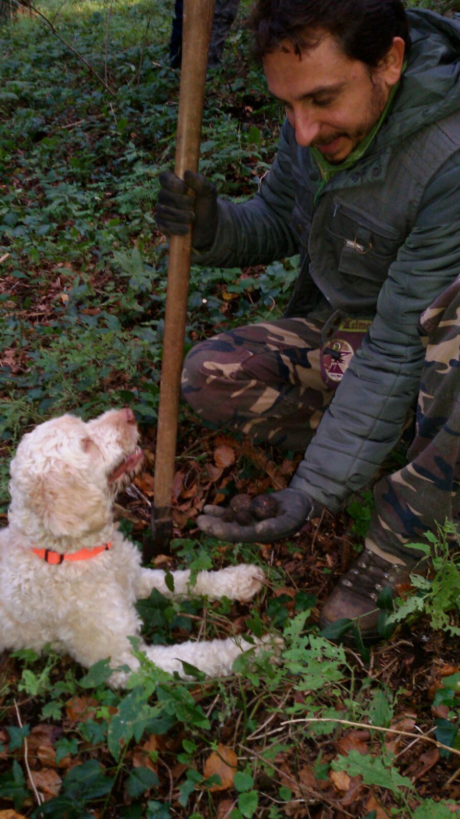 Alla testa del gruppo Doc e Scilla, zigzagando, fanno da apripista. Schizzano di qua e di là tra un cespuglio e l’altro, annusando il suolo. Una corsa frenetica alla ricerca di ineguagliabili composti volatili che, abbandonando la preziosa pepita che li genera, attraversano il terreno.